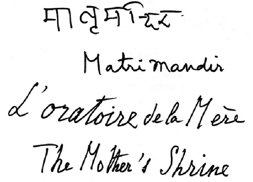 The first record of Mother using the word “Matrimandir” dates from 7.2.68. (in an Auroville brochure). Till then, Mother referred also to it as “l’Oratoire de la Mère” in French and “The Mother’s shrine” in English.