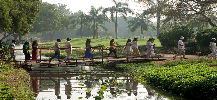 The Open Water Channel forms the first outline of the water body envisaged by the Mother as surrounding the Park of Unity, to act as an “isolating zone”, separating the peace of the Park of Unity from the hustle and bustle of the City on the outer shore.