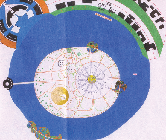 The shape and size of the future island were finalised early in 1971 (and hence the location of the Lake’s inner bank) when the Mother approved Roger Anger’s model of the Island whose shape is an oval, identical to that of Matrimandir’s vertical section but 10 times larger (360m x 290m) She commented that “10 is the number of accomplishment”.